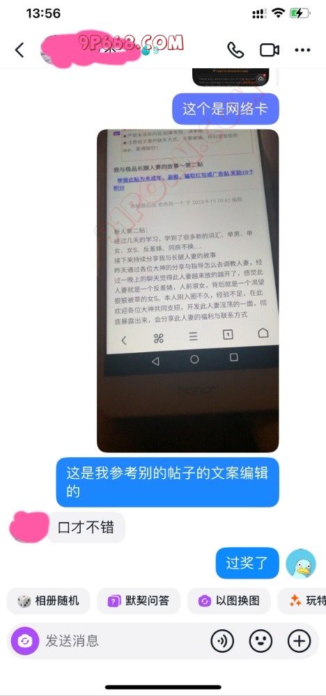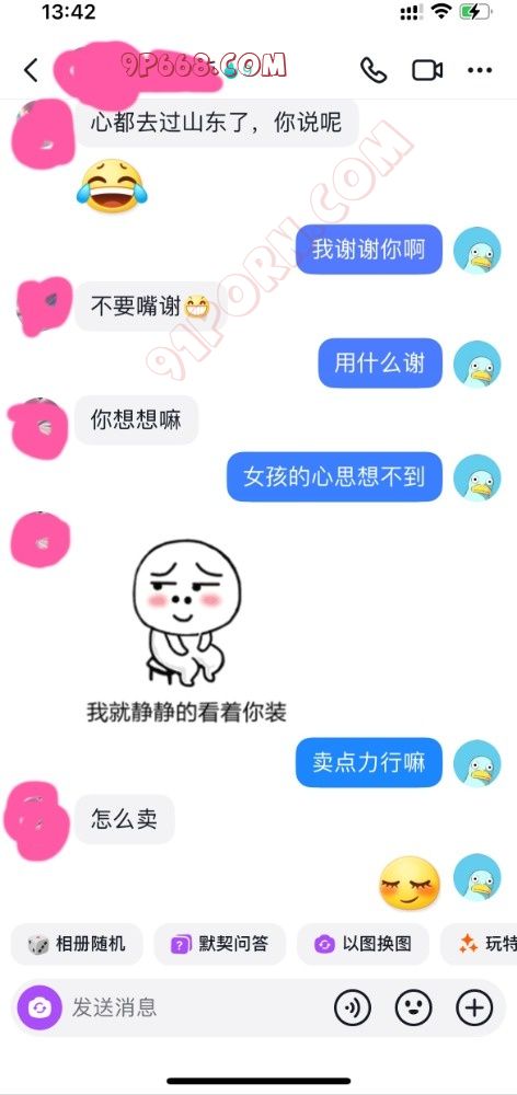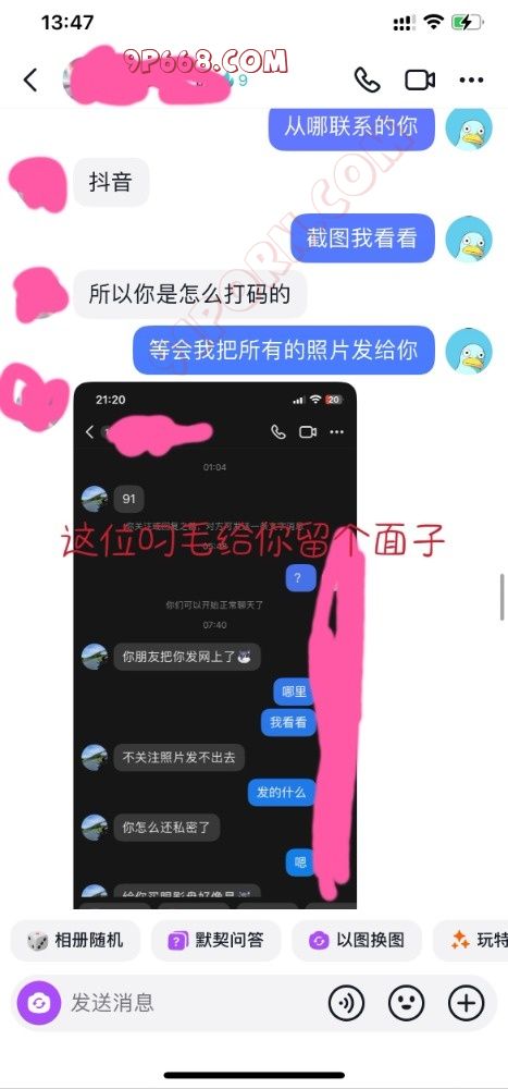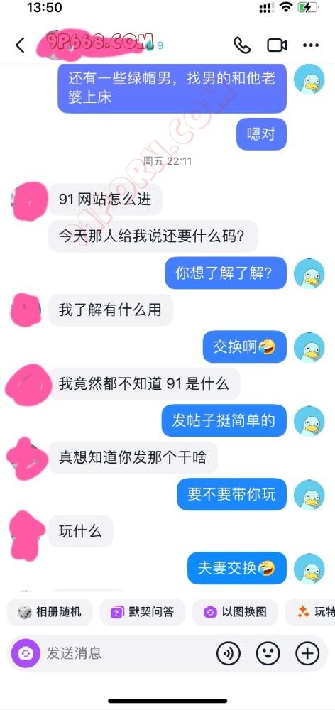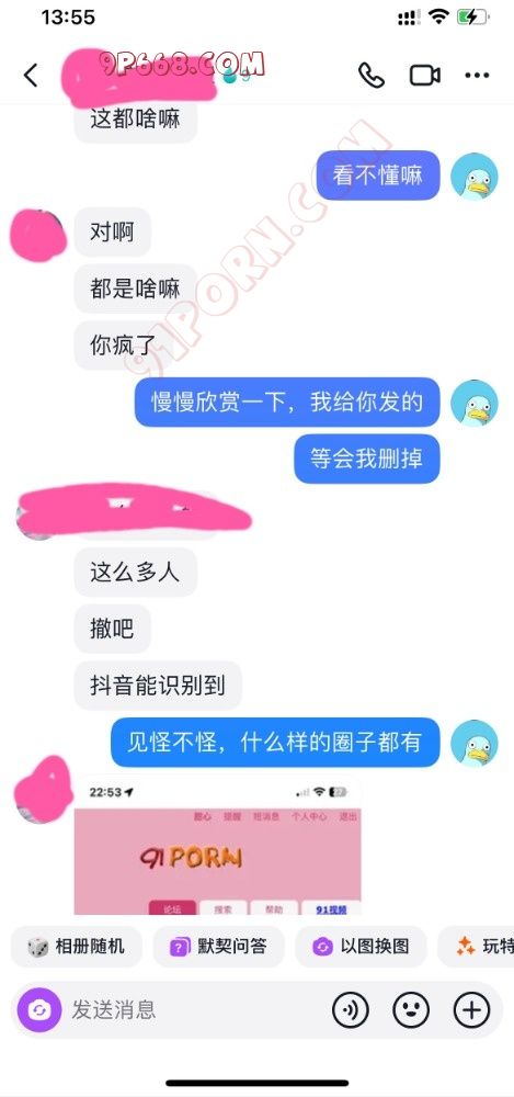 前天买的情趣内衣到了,长达两个小时的视频聊天,释放了两次,聊的人妻湿漉漉的。但是等到第二天突然收到此人妻的质问,问我91是什么,有没有发什么东西(当时心里好慌)立即请教大神看该如何回复,经过大神的耐心的指导,终于平息人妻的怒火,同时还有意外的收获,人妻非但没有太过于责怪我,而且还对91这个大家庭很有大的兴趣。看图吧,懂得都懂,独乐乐不如众乐乐,