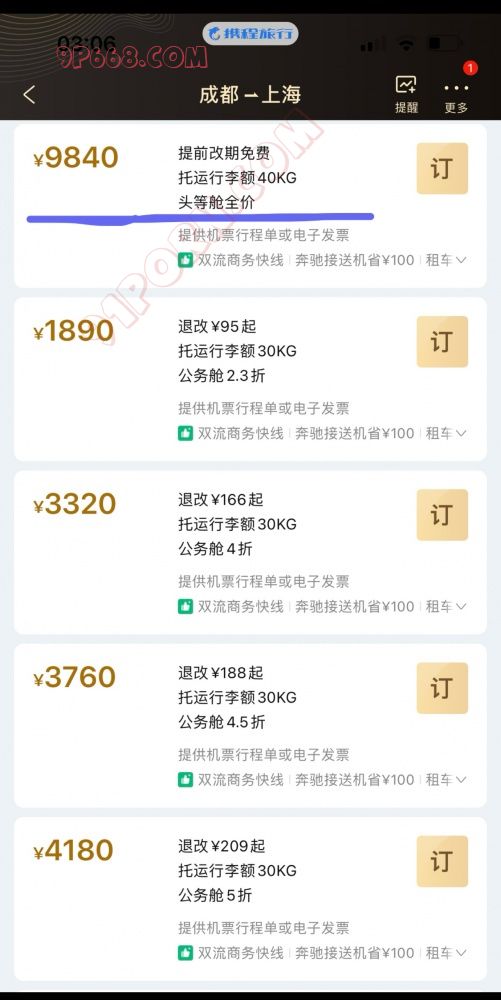 三月成都飞上海头等舱 可以两张床拼一起的那种头等舱
