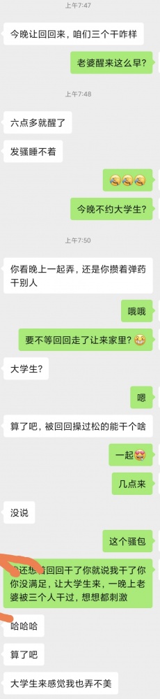 今晚老婆和新聊的大学生去见面